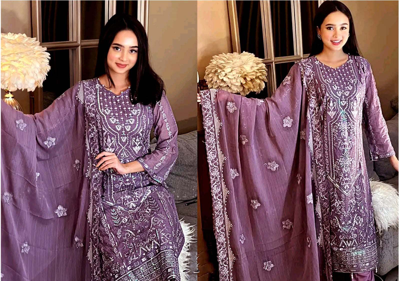 Neckline: A modest round neckline with embroidered borders for a refined touch.
